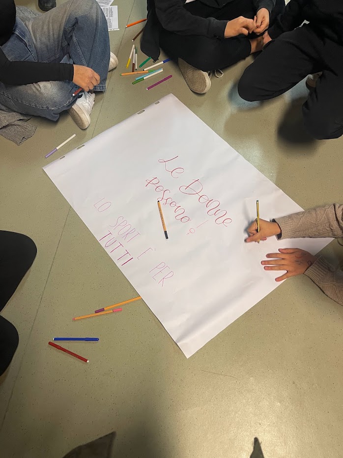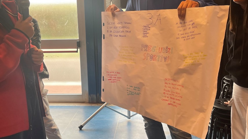 L'evento ha proseguito con un coinvolgimento attivo dei partecipanti, divisi in gruppi. A ciascun gruppo è stato chiesto di esprimere gli stereotipi vissuti, sia nello sport che nella vita quotidiana, attraverso disegni o messaggi su cartelloni.